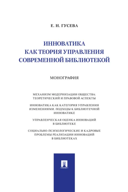 В монографии представлены собственные разработки автора по определению инноваций, а также оценке их эффективности. Феномен инноваций рассмотрен исключительно как управленческий инструмент развития библиотеки. Кроме того, предложена карта компетенций инновационно ориентированных кадров библиотек.