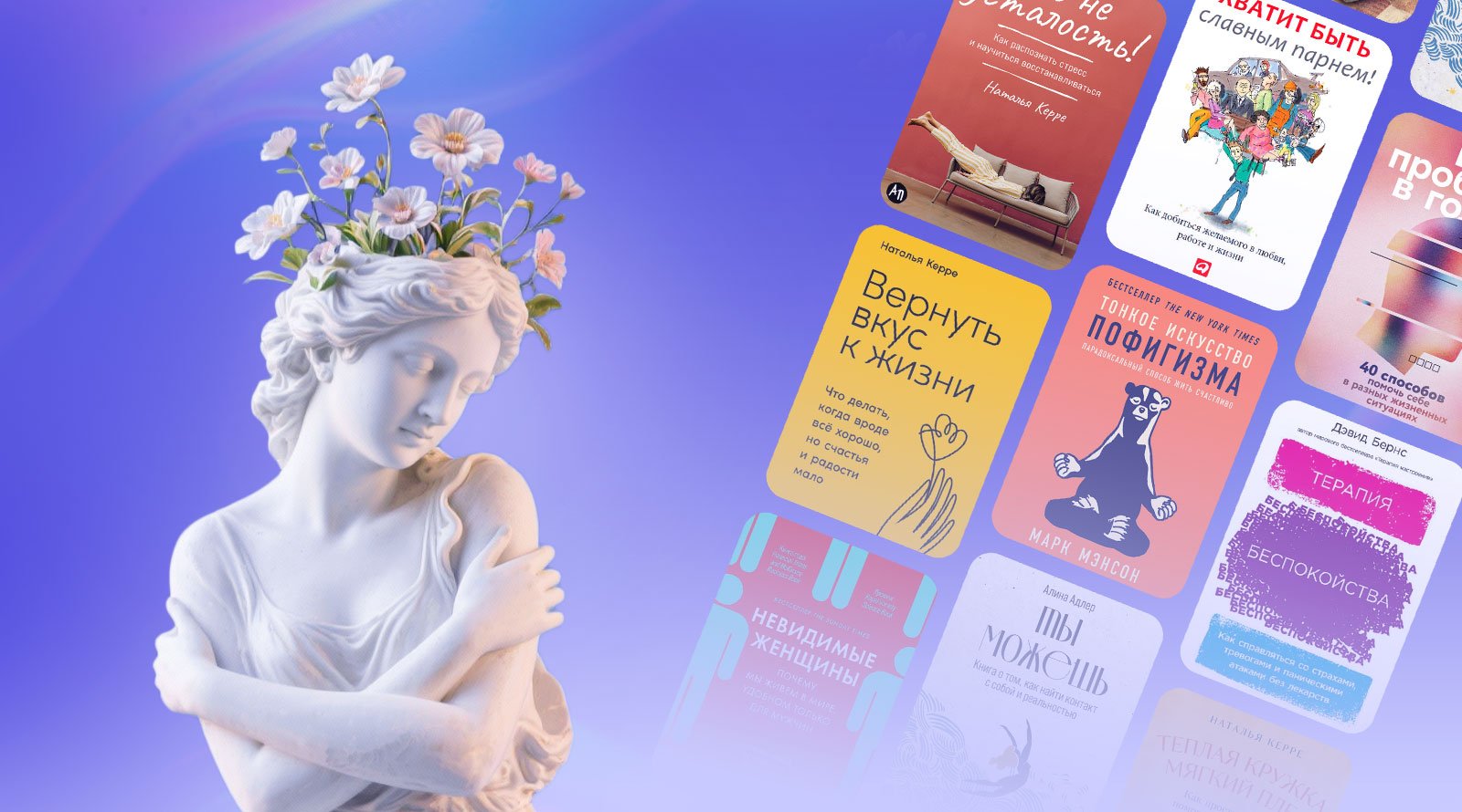 Обратите внимание на воодушевляющий бестселлер Марка Мэнсона «Тонкое искусство пофигизма» – о парадоксальном способе жить счастливо; социальное исследование Кэролайн Криадо Перес «Невидимые женщины: почему мы живём в мире, удобном только для мужчин», оно поможет задуматься о неравноправии, которое мы не замечаем; книгу «Терапия беспокойства» Дэвида Бёрнса – руководство, чтобы справляться со страхами и паническими атаками без лекарств, а также на издания «Вернуть вкус к жизни» Натальи Керре и «Большое волшебство» Элизабет Гилберт – о том, что делать, когда вроде всё нормально, но радости мало.