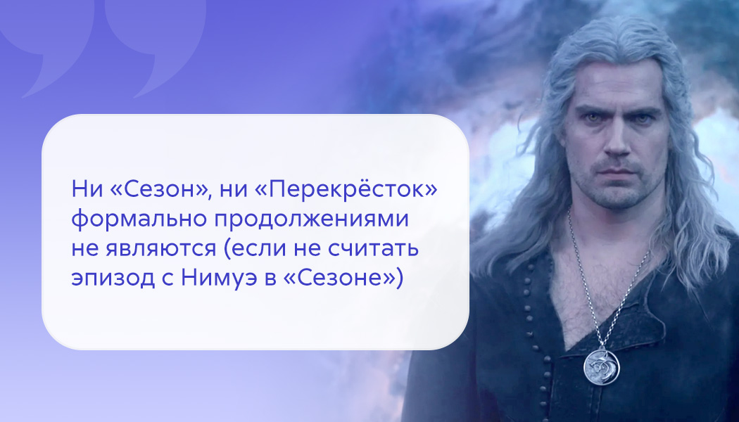 Ну, строго говоря, пан Анджей сдержал слово и сиквелов действительно не пишет. Ни «Сезон», ни «Перекрёсток» формально продолжениями не являются (если не считать эпизод с Нимуэ в «Сезоне»). Стоп-слово сказано и выполняется, сюжет закончен, но в мире ещё много разных историй. Я даже больше скажу, есть значительная категория читателей, которым «зашли» рассказы и гораздо меньше – сага; вполне можно считать, что эти два романа написаны для них, они к саге – никаким боком.